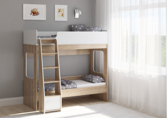 Классическая детская двухъярусная кровать с двумя параллельными спальными местами размером 1750х750.