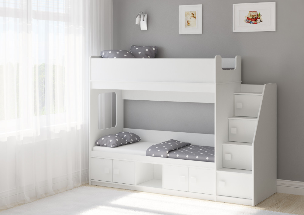 Под нижним ярусом раполагаются закрытые места хранения, оборудованные дверкаии. Ваш ребенок с удовольствием будет хранить там свои любимые игрушки.